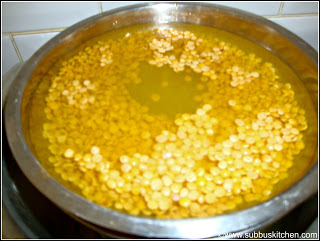 - Wash the Toor dal. Add turmeric powder and water till the dal is immersed in water. Pressure cook it for 4-5 whistles and switch off the flame. Once the pressure is completely released open the cooker. Mash the cooked dal and set it aside