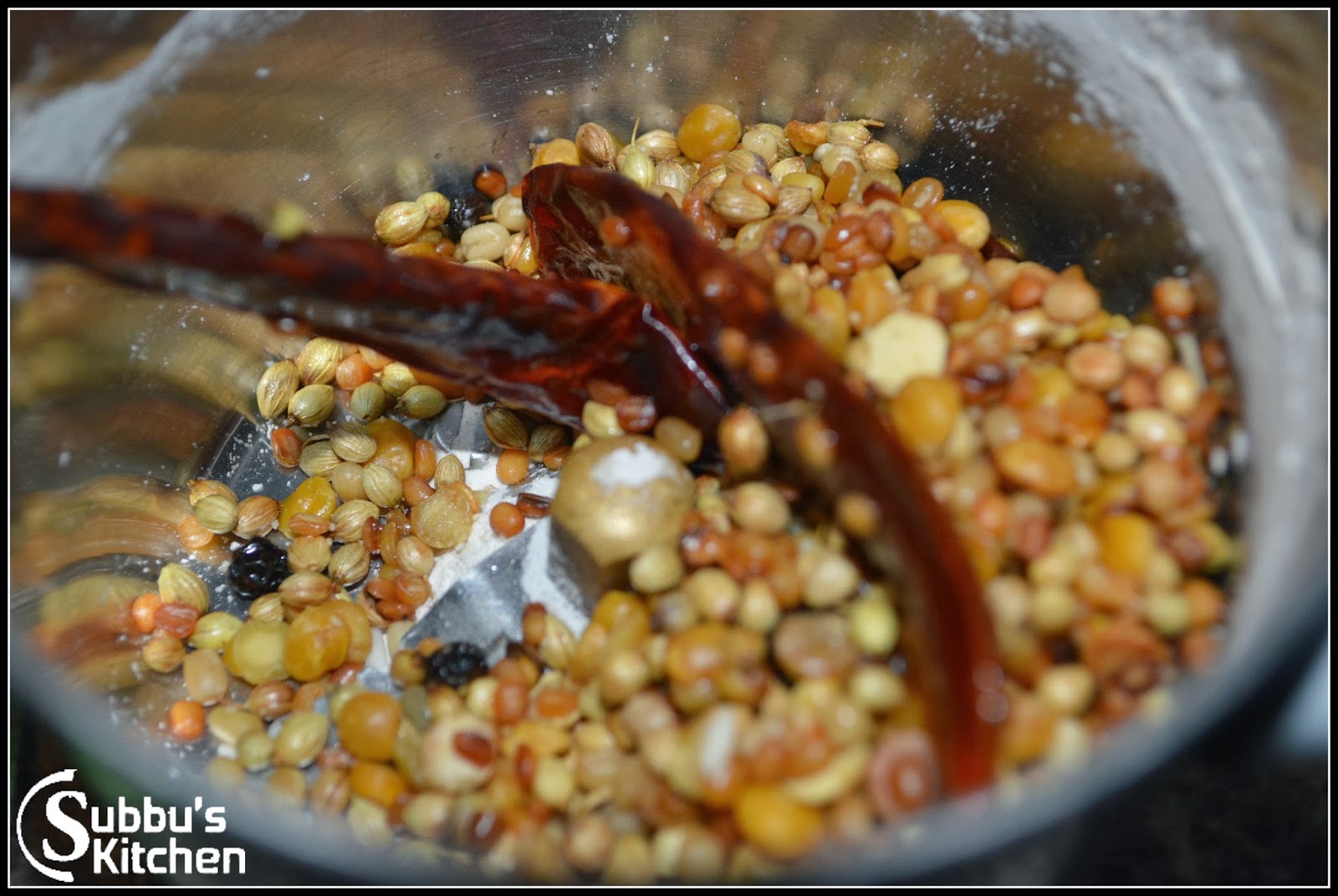 - We can also fry each ingredient separately so that they are evenly fried. Then take all these in a mixer. Grind the ingredients to a nice powder