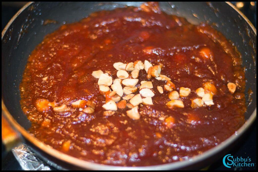 - Finally add roasted cashews and almonds and mix well. Switch off the flame and keep stirring the halwa for couple more minutes.