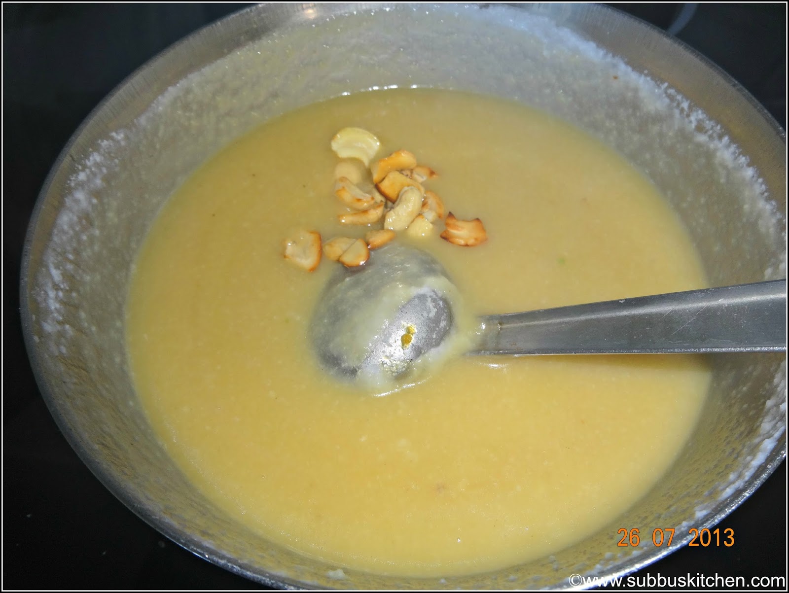 - Heat ghee in a pan, add broken cashews and fry it till it turns golden brown color. Take this aside