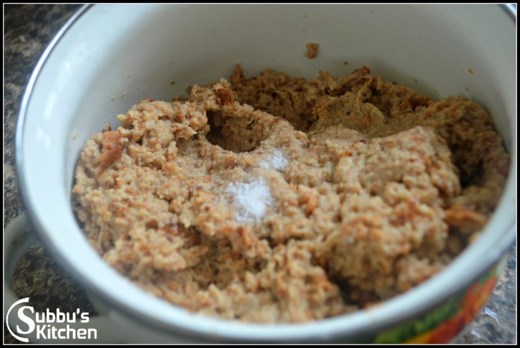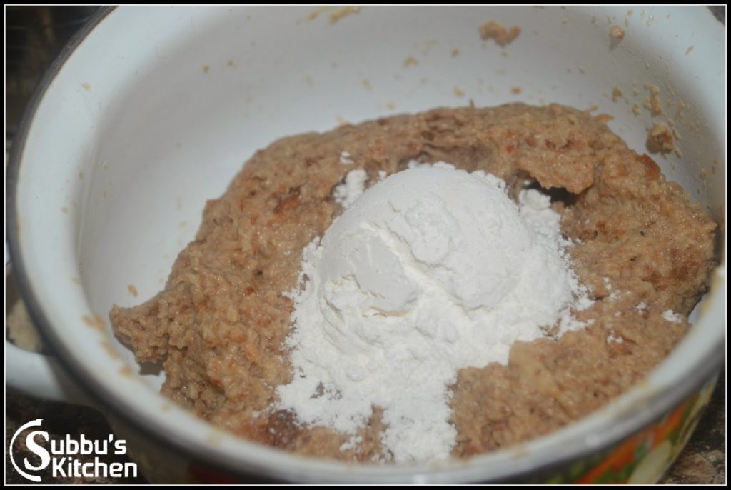 - Squeeze the bread slices well to drain the water and make it like a dough. Add maida and a pinch of salt and mix well. Now our bread dough is ready