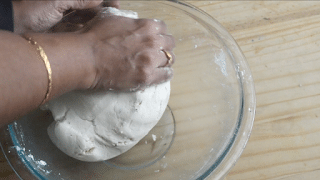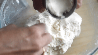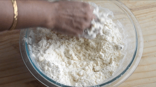 - Mix the rice flour, besan, roasted gram flour and add butter, jeera, hing and salt and mix well