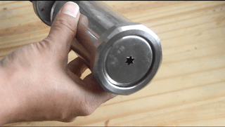 - Take the press and close the bottom of the press with one star mould. Grease the press and mould with oil. Greasing helps to easily squeeze the dough out of the mould. Take one handful of dough and fill the murukku press and close it.