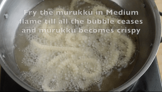 - Heat oil in a heavy bottomed pan. Test the oil by adding a pinch of dough and if it raises immediately then the oil is hot enough to fry the murukku.