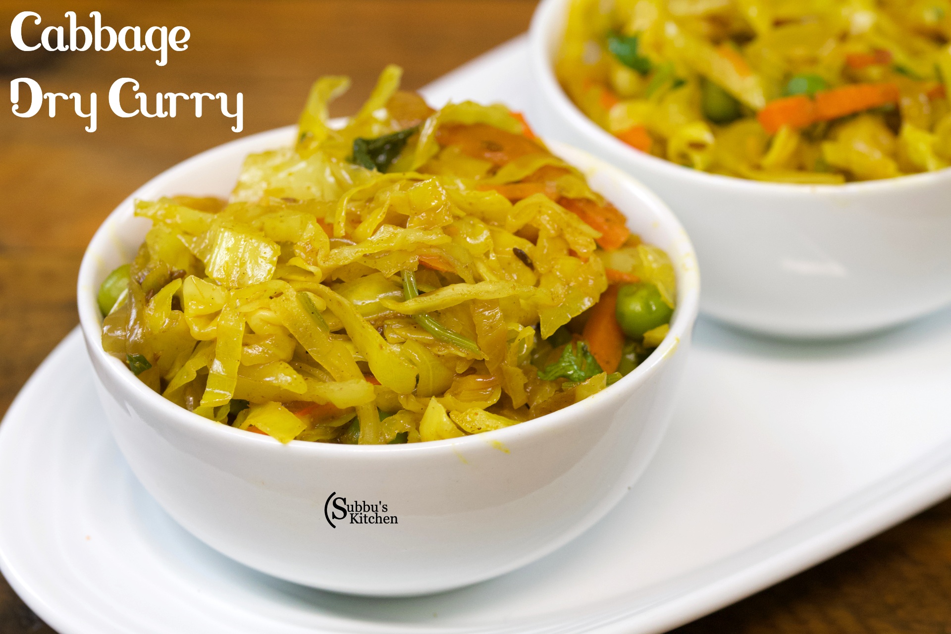 Cabbage dry curry is an easy and quick stir-fry made with mild masalas and cabbage. This is a good accompaniment to roti, naan or with with rice varities.