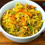Cabbage Stir-fry is made using thinly sliced cabbage sautéed with onion, carrots in a light and flavorful spices. Sometimes, the simple and quick dishes are most tastier than the most complex or time consuming dishes. One such dish is the cabbage dry curry. Whenever we think of dry curry, most of us first think of making Aloo Methi, Aloo Jeera or Aloo Palak. Anything with aloo is always a big hit especially with kids. This cabbage dry curry is a perfect accompaniment for roti or any rice varieties.