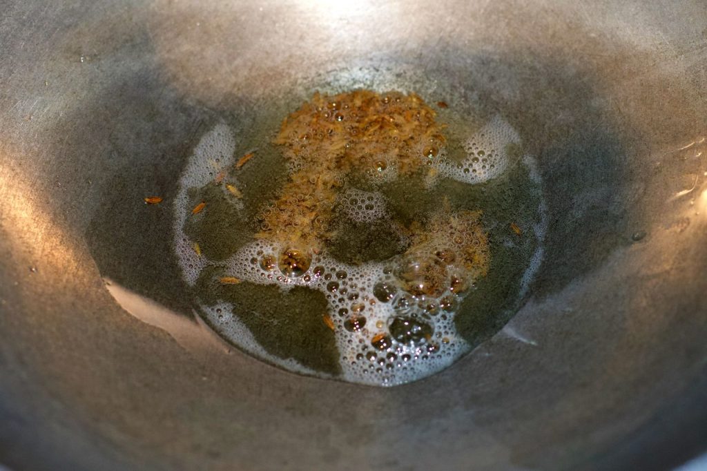 - Heat the oil in the heavy bottom pan. Once the oil is hot add the cumin seeds.