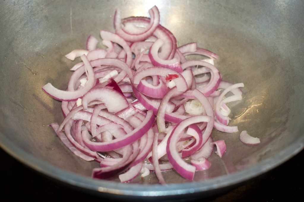 - Thinly slice the onion and keep it aside. Also slice the carrots lengthwise.