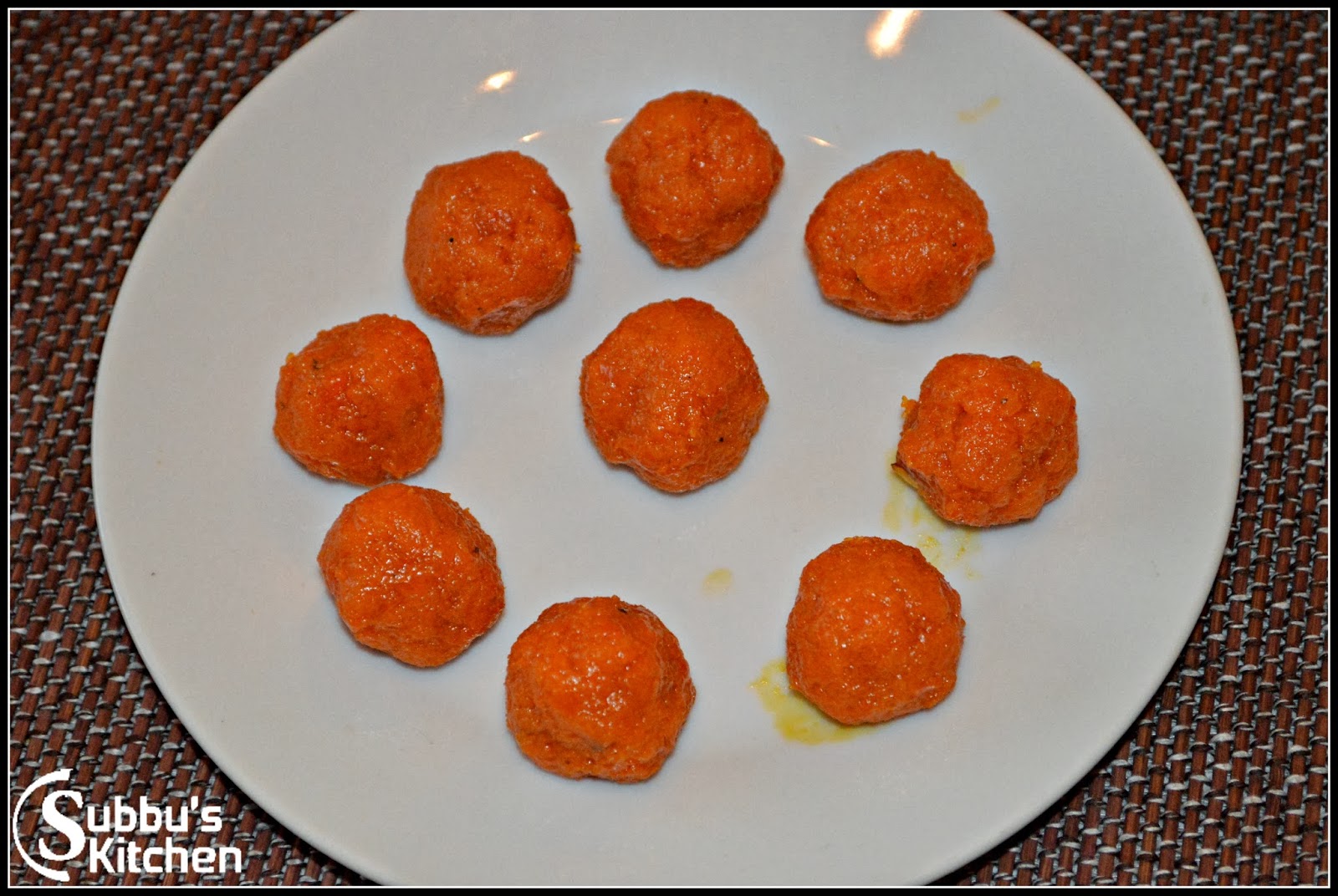 While googleing the presentation of the Carrot Halwa, I saw the nice and creative presentation by Manju's Eating delight and hooked by her idea. Here you go, an yummy dessert in a stunning presentaiton Carrot Halwa Ladoo and Carrot Halwa Candy
