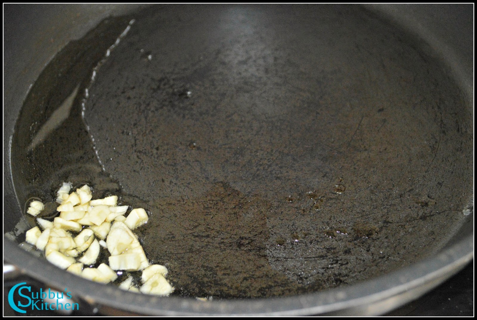 - Heat oil in a pan and add chopped garlic and saute it for couple of minutes.