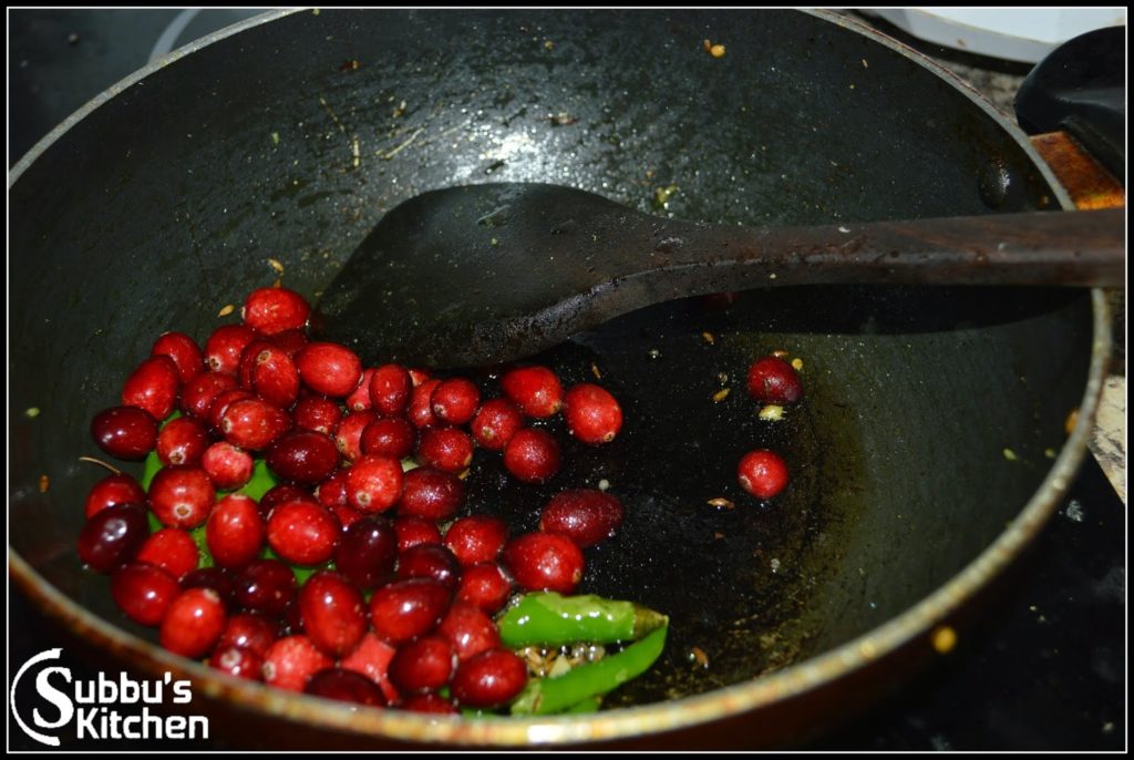 - Soak and wash the cranberries in water. Heat a pan and add oil and when the oil is hot, add mustard seeds. When the mustard seeds starts to sputter, add cumin seeds