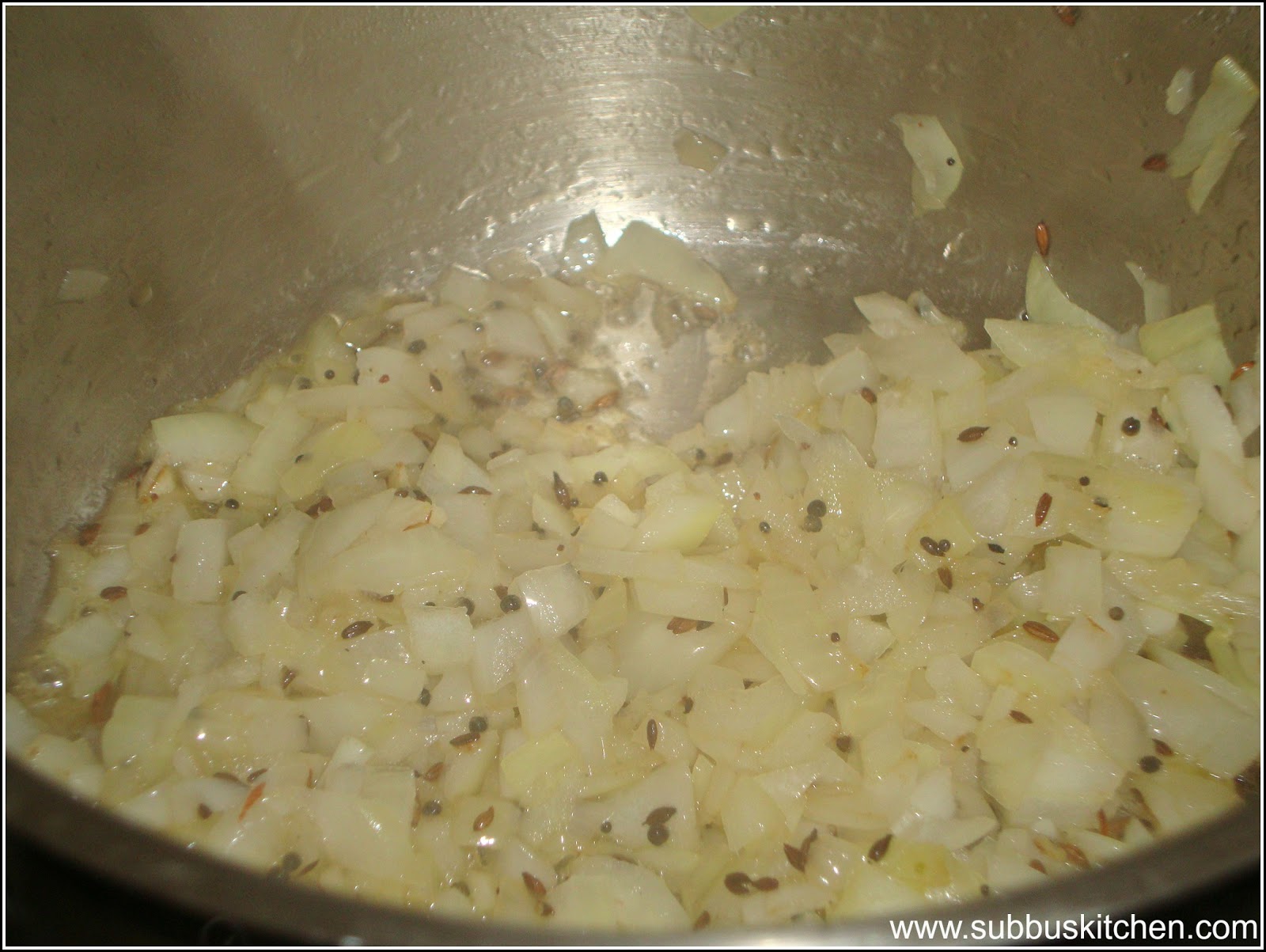 - When the ghee is hot(bubbles will come if ghee gets heated), add cumin seeds and allow it to sputter