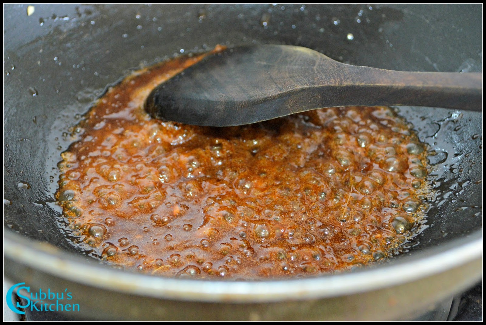 - Add grated jaggery in a pan and some water to dissolve the jaggery. Once the jaggery juice starts thicker, add the grated coconut and ground channa dhal powder and mix it well and then take it from flame. Fry the cashew in the ghee and then add it in the channa dhal mixture.