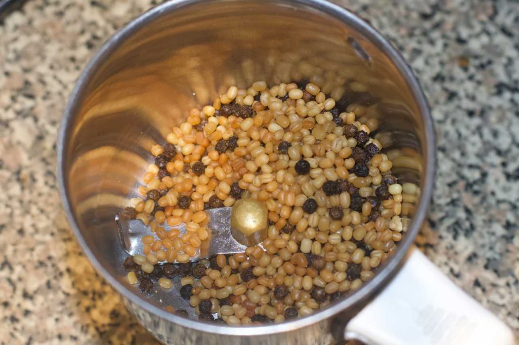 - Take the fried ingredients in a mixer jar.