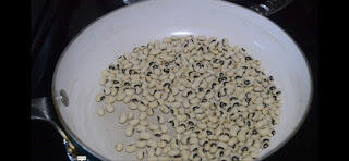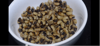 - Heat a pan and dry roast the Karamani (Black-eyed pea) till they are slightly golden brown and then take it in a vessel. Add water till they are immersed and pressure cook it allowing for 3 whistles. Keep the cooked cowpeas aside