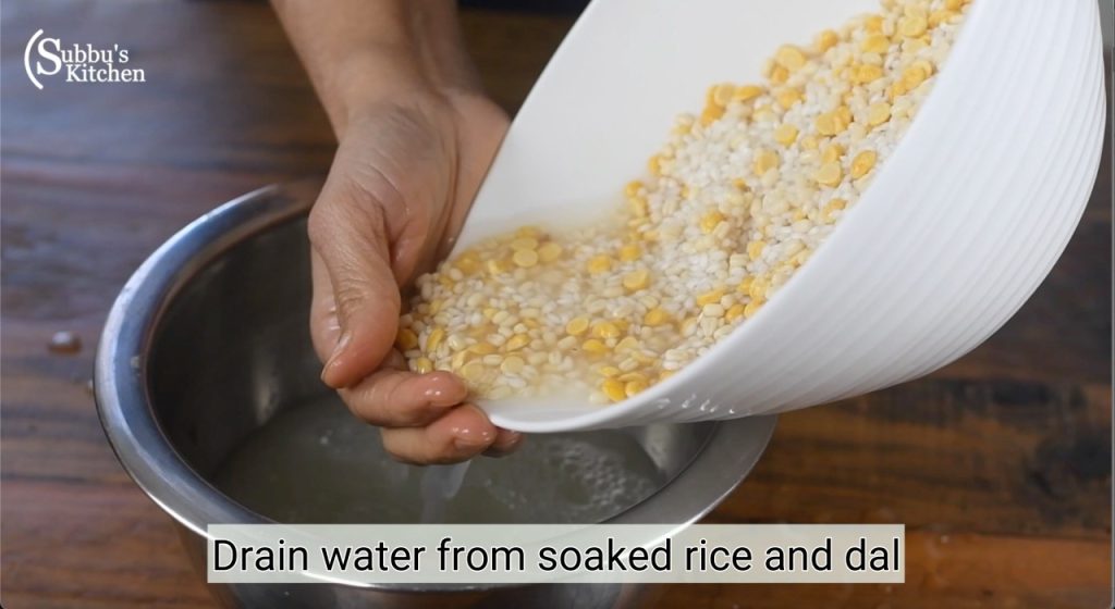 - Add fresh water to soak the rice and dals. Let the rice and dals soak for 2 hours