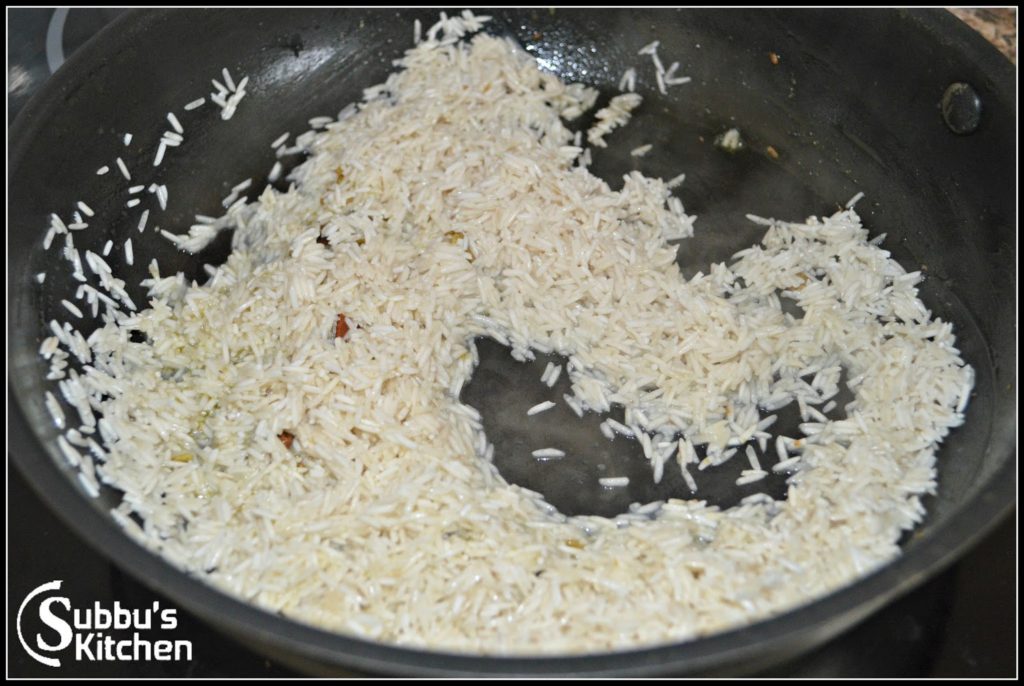 - Keep the flame high and allow the rice to boil. When all the water is drained, keep the flame to very low and cover the pan with a lid and cook for another 15 minutes