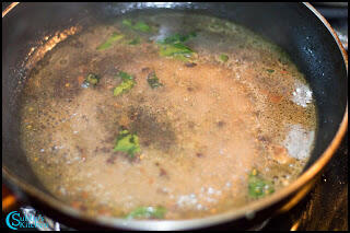 - To this, now, add tamarind extract along with salt and allow it to boil for 5 minutes to get rid of raw smell.