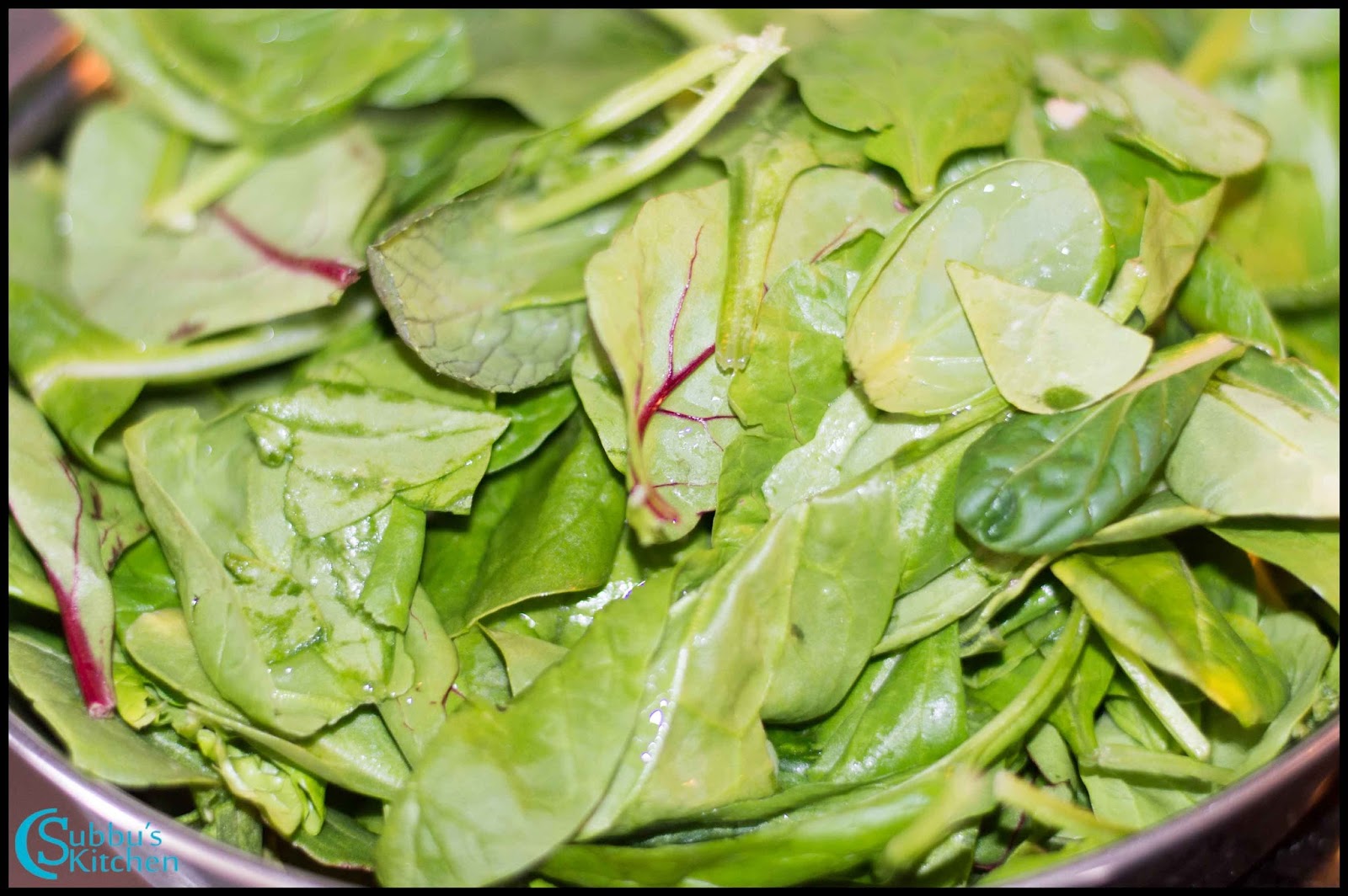 - Pluck the leaves from spinach and wash it nicely twice or thrice under running water. Chop the spinach finely and take it in a sauce pan and add ½ cup of water along with turmeric powder and allow the spinach to cook