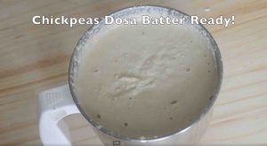 - Set the dosa batter aside for 2 hours for fermentation. The chick peas added makes the batter ferment quickly and will keep fermenting. So its better to make dosas after 2 hours.