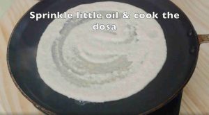 - Sprinkle little oil and cook the dosa. Flip on other side and cook the other side of the dosa.