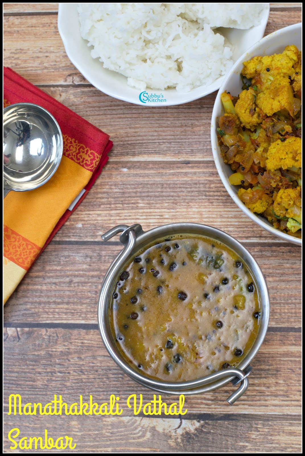 - Manathakkali Kai Kuzhambu - Manathakkali Kai ( a green seed from Black Night Shade plant) is a healthy and tasty seed. We can use the seed to make very delicious kuzhambu. Slight bitter taste of this seed along with the spicy tamarind gravy makes this kuzhambu more interesting and tasty