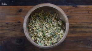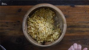 - Take the coarse vada mixture and add the reserved soaked dal along with salt.