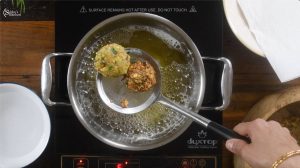 - Always keep the flame in medium or low-medium while frying the vada. If we keep the flame high, the vadas turn dark brown but will be crispier only for little time and then become so chewy