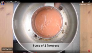 - Add tomato puree and cook the puree in medium flame for 3-4 mins.
