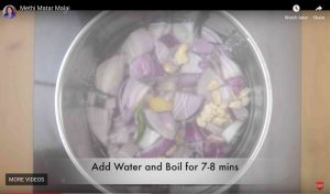 Methi Matar Malai is a rich dish made from freshly chopped fenugreek leaves (methi leaves) , green peas, cream and Indian spices. estaurant style methi matar malai which has mild sweet taste with best aromatic aroma and flavor of true Indian spices!!! Methi Matar Malai can be done in 2 ways. One version is with onion+cashew+cream and spices and the other version with tomato along with onion, cashews, cream and spices. I love the tomato version and make it often. This yummy dish goes well with Roti / Naan or simple Jeera Pulao.