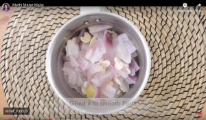 - Take the Cooked Onions, ginger, chilli and cashews to mixer jar and grind it to a smooth paste