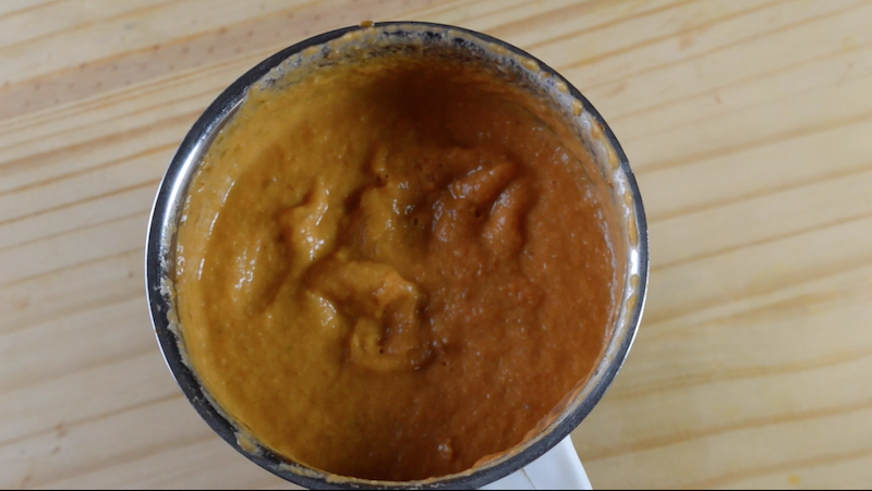 - Then, allow the onion-tomato mixture to cool down completely. Take it to mixer and grind it to a smooth paste. The onion-tomato gravy ready.