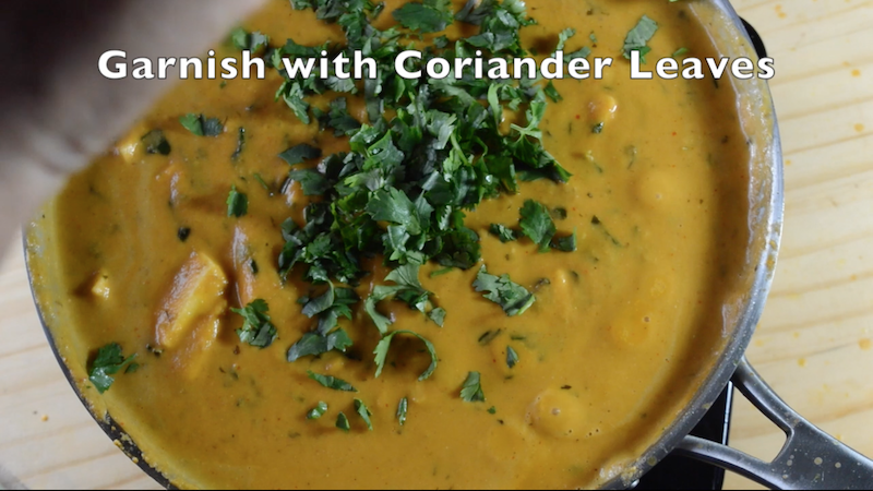 - Allow the gravy to cook for couple of minutes so that the paneer gets blended with the gravy. Then add coconut milk or fresh cream. Switch off the flame and garnish with coriander leaves