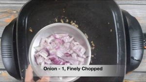 - Heat remaining ghee / oil in a pan. Add cumin seeds and allow it to crackle. Then add chopped onions and sauté the onions till translucent.