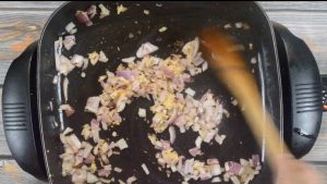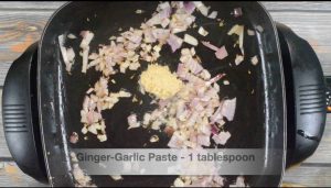 - Then add chopped onions and sauté the onions till translucent. Then add ginger-garlic paste and sauté for 2 mins