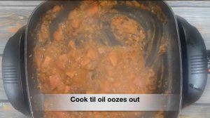 - Then add 1 cup of water and cook the masala till the oil /ghee starts to ooze out.