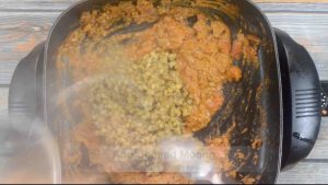 - Now, its time to add cooked moong and give a good mix. Then add cashew paste