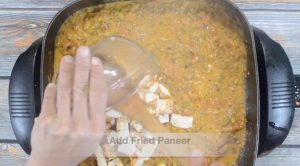 - Add fried paneer to the pan. Adjust the consistency of the gravy by adding water. Allow the gravy to boil for 3-4 min.