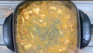 - Add fried paneer to the pan. Adjust the consistency of the gravy by adding water. Allow the gravy to boil for 3-4 min. Add crushed Kasoori methi and give a final mix.