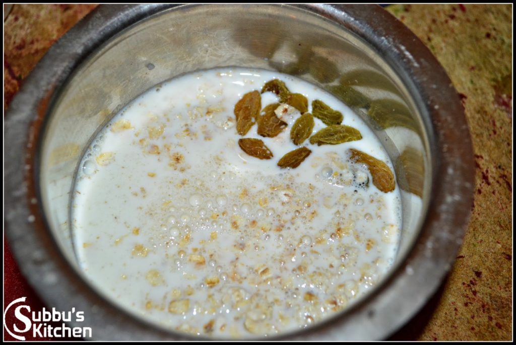 - Now add the soaked oats and raisins and again boil for 5 minutes