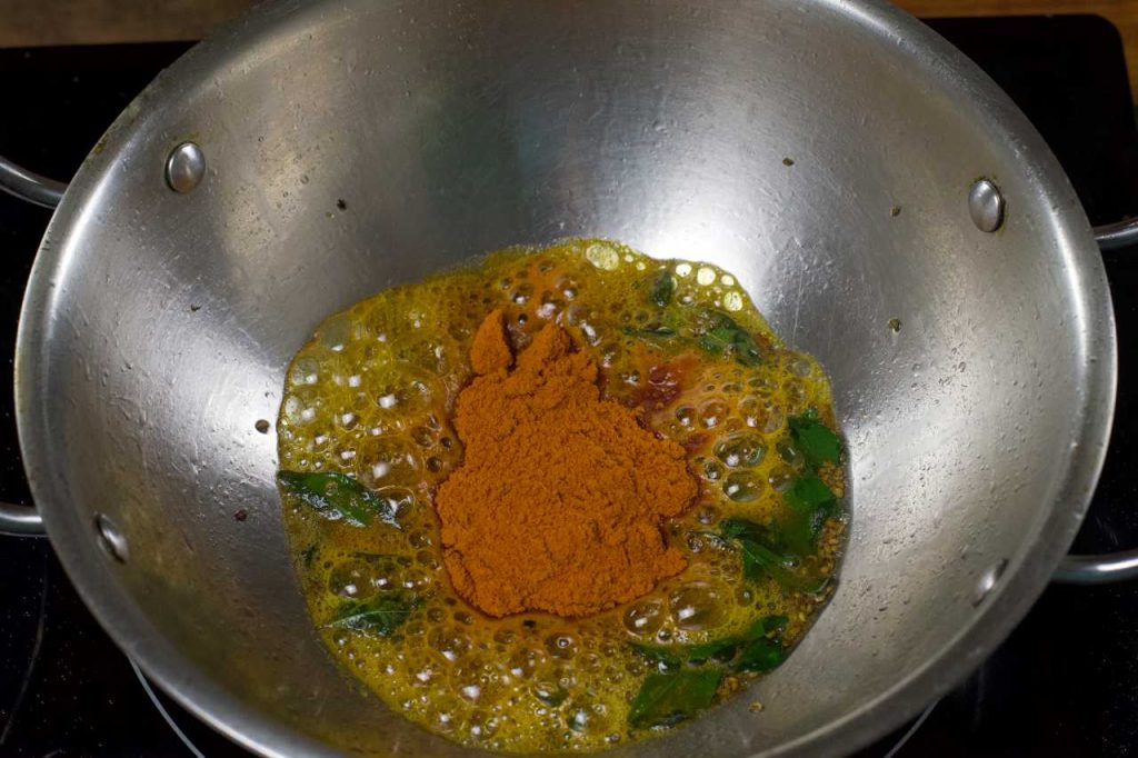 - When you fry the sambar powder in oil, make sure to keep the flame low to prevent it from getting burnt.