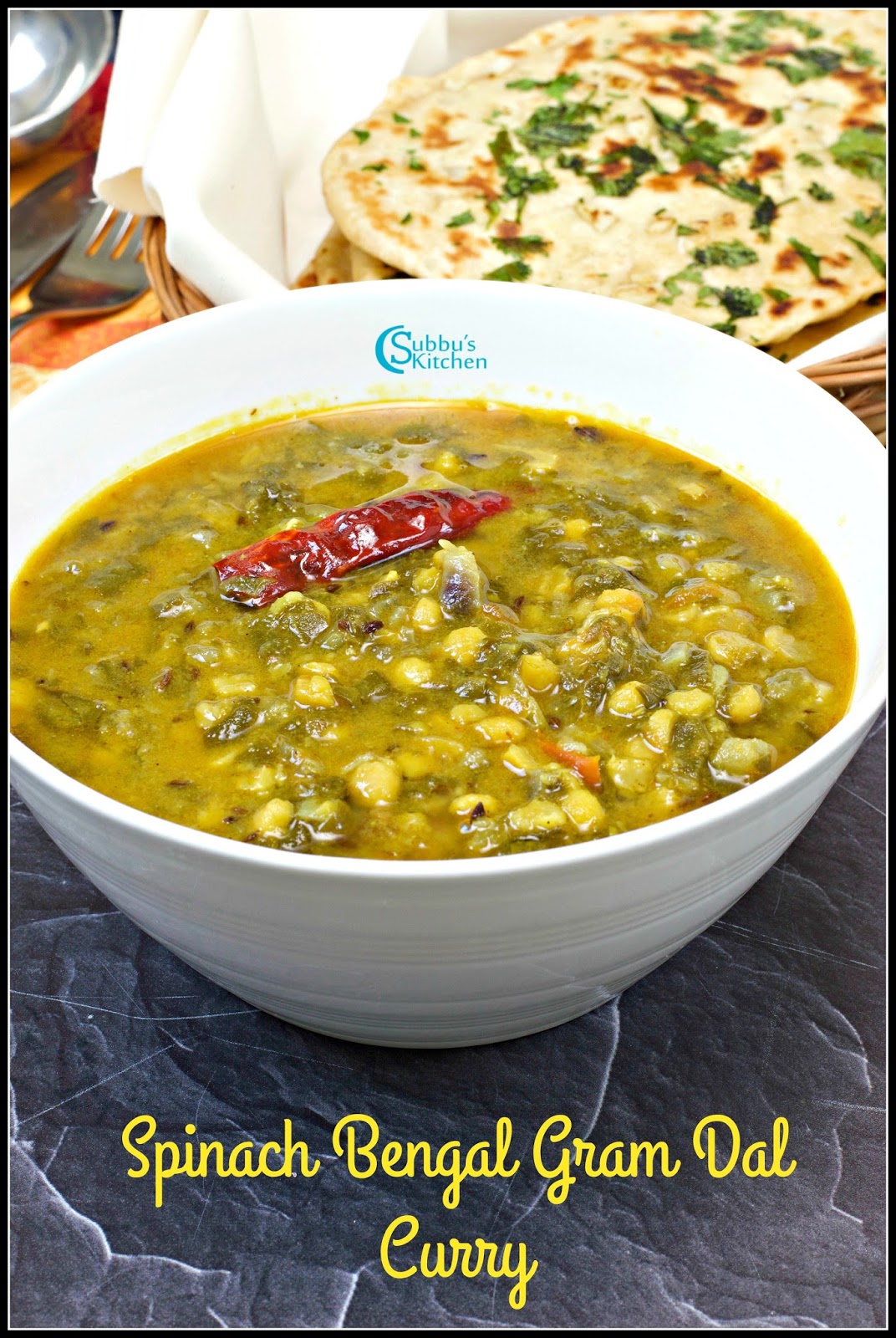 - The delicious Palak Channadal is now ready to serve! Relish Palak Chana Dal curry with Roti/Naan/Paratha or any Pulao varieties.