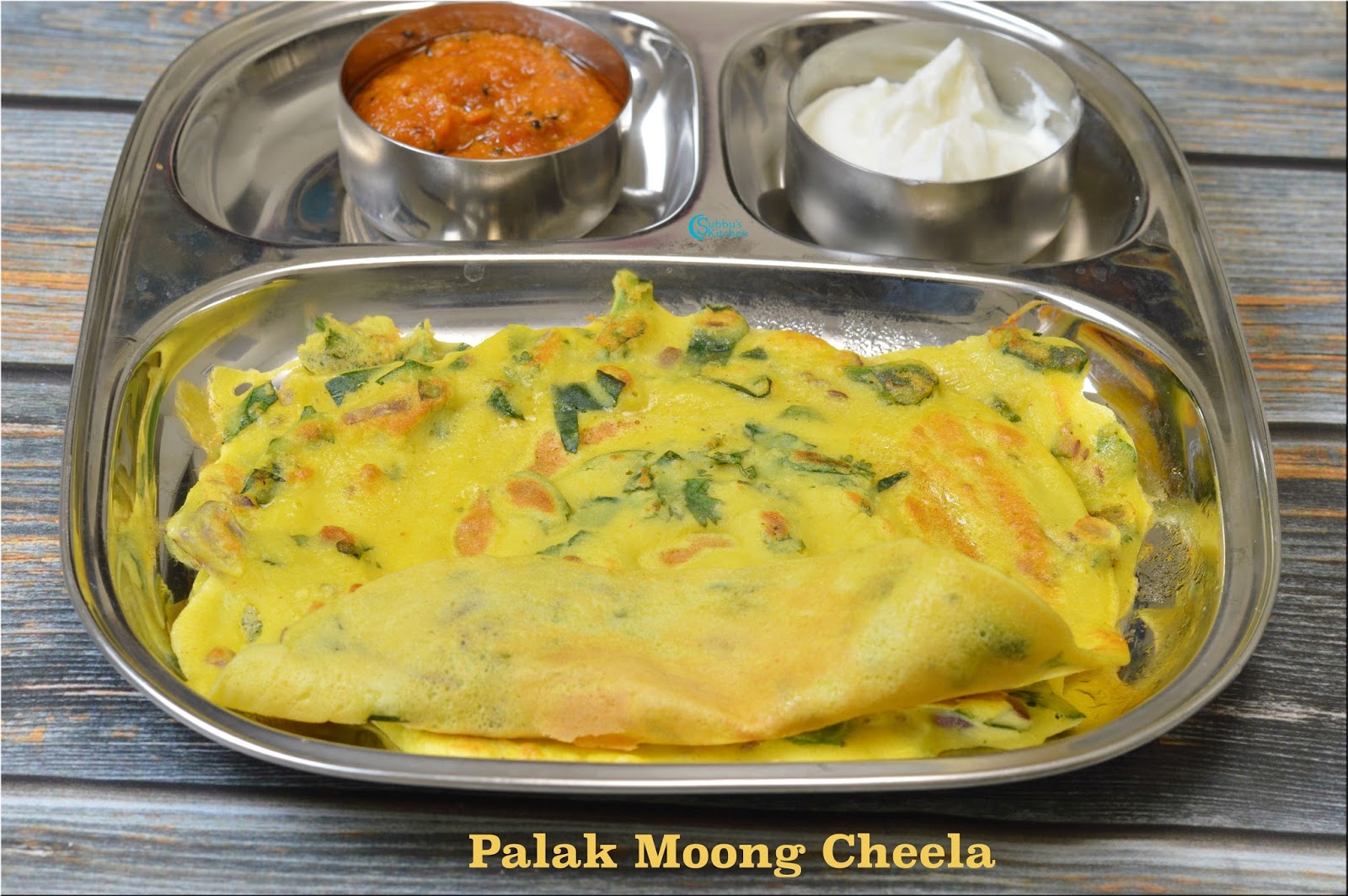 | Palak Moongdal Cheela | Spinach Moong Crepes |