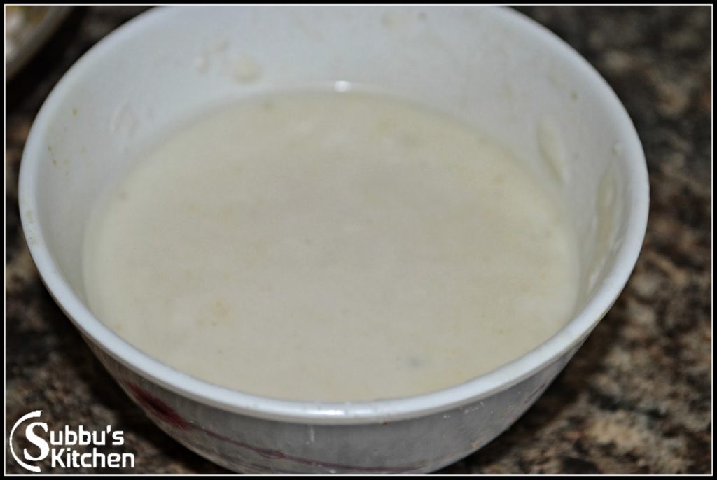 - Mix the peanuts powder and the bread crumbs and keep it ready for coating the paneer. Also Take the all purpose flour in a bowl and mix water to make it to a paste