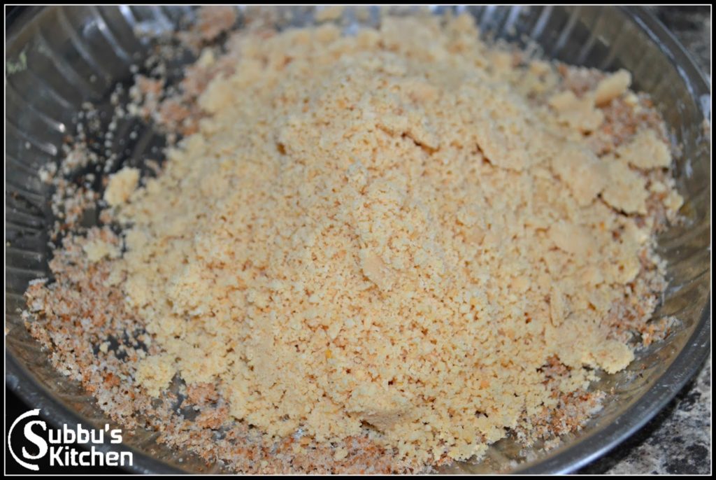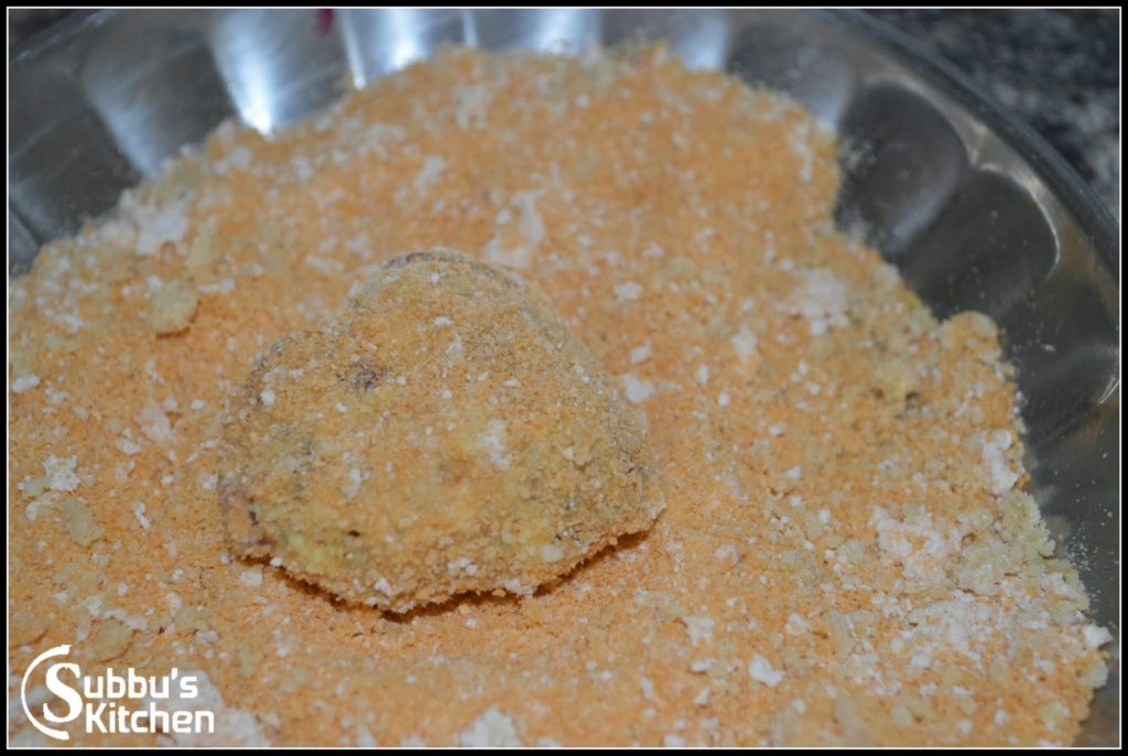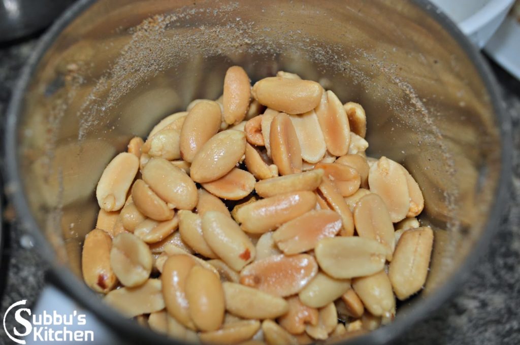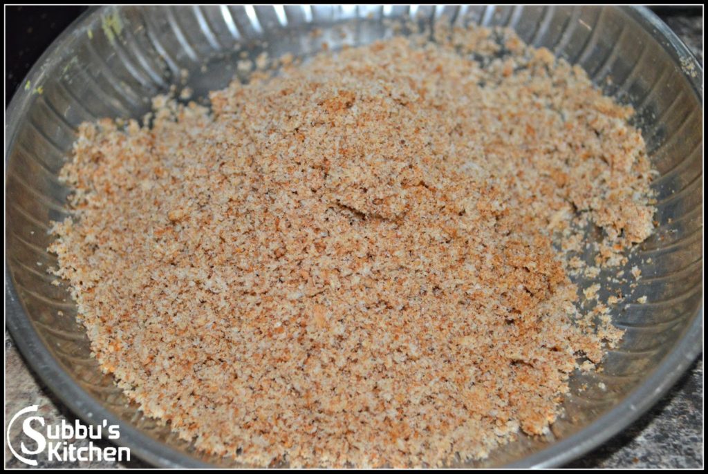 - Take the bread crumbs in a flat plate. Grind the peanuts in the mixer to a fine powder