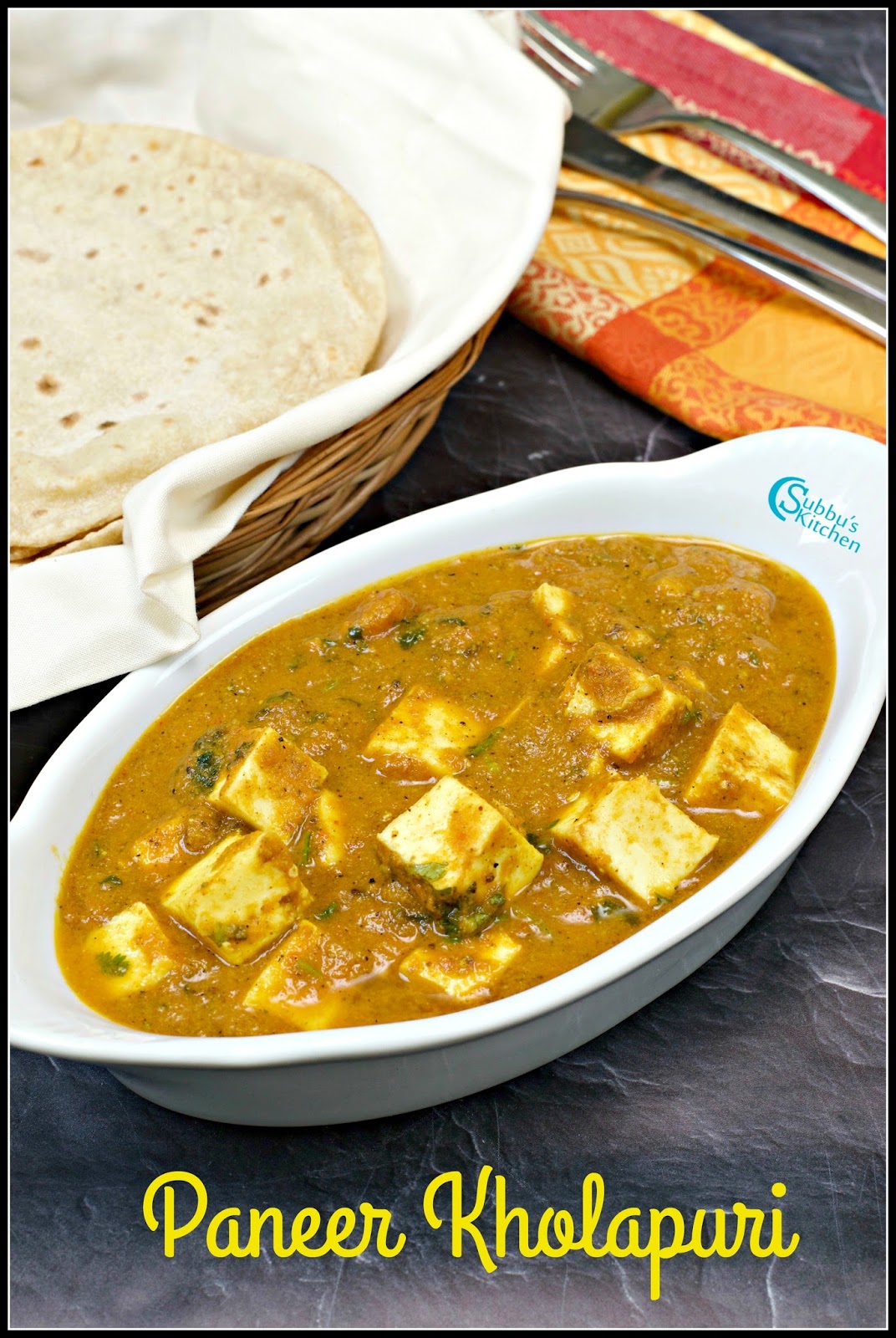 Paneer Kolhapuri, a delicious Paneer recipe served as an accompaniment. Cottage cheese (Paneer) cooked in homemade fresh masala spices along with coconut making this gravy unique and tasty. Not only paneer is rich in protein but also favorite for everyone especially kids. This Paneer Kolhapuri is a real treat to our taste buds. Paneer Butter Masala, Kadai Paneer are some of the most common and popular Paneer varieties in any restaurants. But once we taste this Paneer Kolhapuri, this paneer recipe will become top in our favorite paneer recipes! This is a no onion no garlic version. We can make the same recipe with onions too.