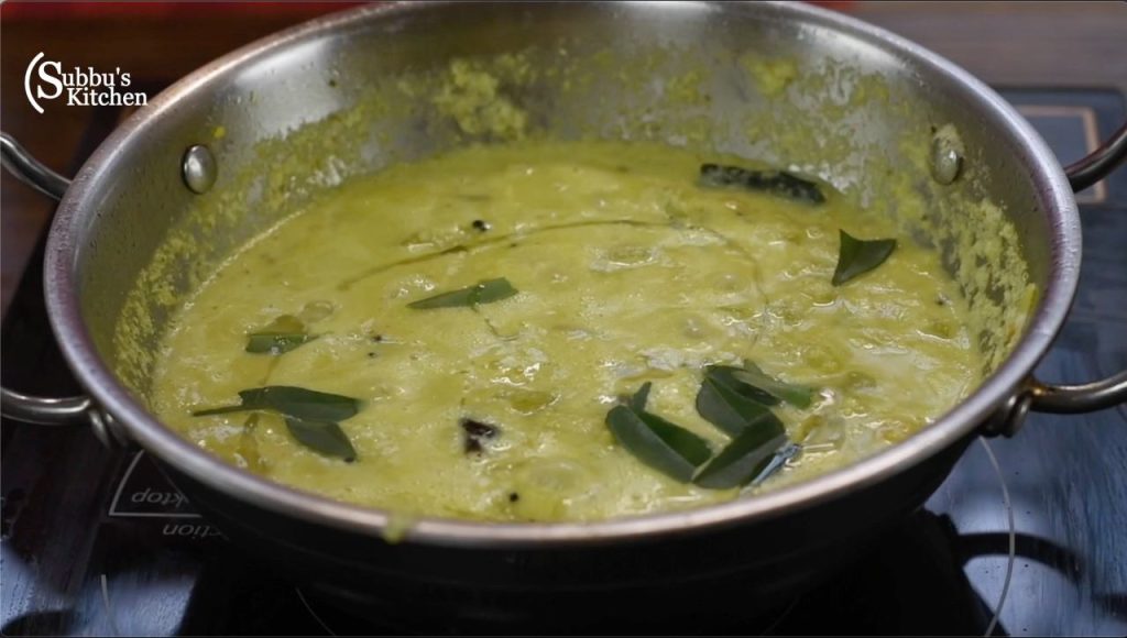 - Add salt and gently mix everything. Allow the stew to boil for 2 minutes and remove from flame. Add a teaspoon of coconut oil and some tore curry leaves and stir well