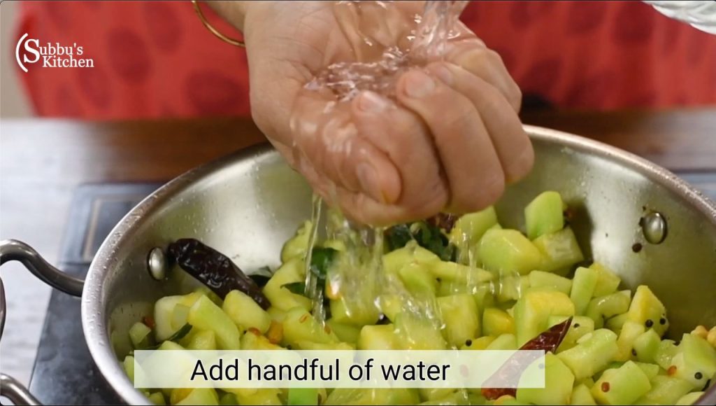 - Since this vegetable is rich in water content, it cooks quickly, so do not add more water while cooking. Just sprinkle little water, cover and cook the peerkangai.