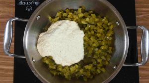 - Add this ground coconut+spice paste to the cooked snake gourd and mix well. Keep this stew in the medium flame and bring it to boil