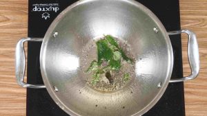 - Add curry leaves to the pan and add this tempering to the boiling stew and switch off the flame